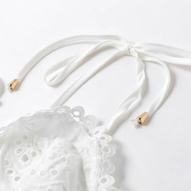 Crafted with care, this set is available in a classic white color, ensuring you look effortlessly elegant. The lightweight and breathable fabric will keep you comfortable while you soak up the sun.