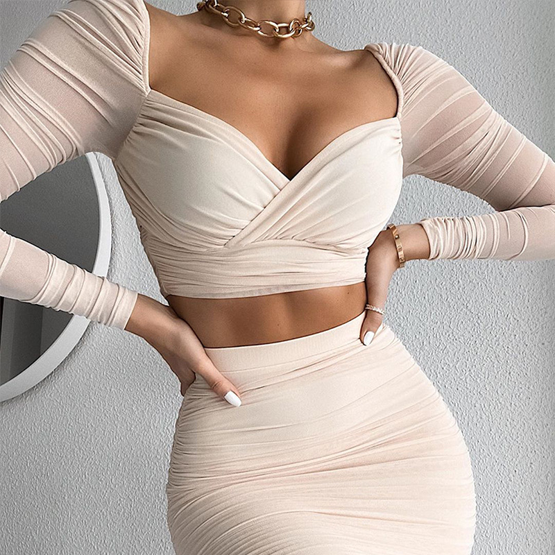 Elevate your wardrobe with our stunning ruffled puff sleeve top and mini skirt set. Crafted from high-quality polyester fiber, this two-piece ensemble combines elegance with a touch of playfulness, making it perfect for various occasions.