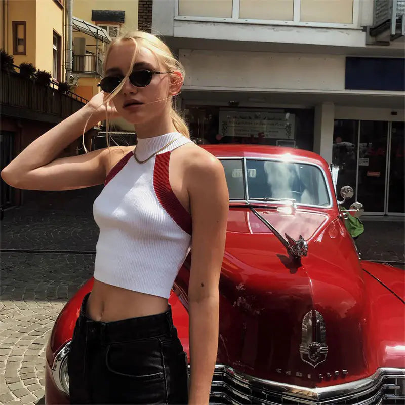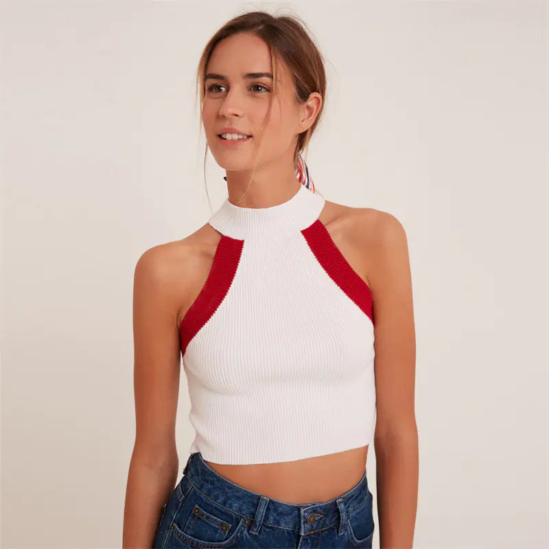 Summer Women's Sleeveless Crop Top with Hollow Design